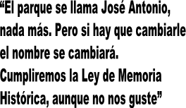 R.- Pero fíjate, se llama José Antonio nada más. Suponemos que hace mención a alguien, pero… En fin, en cualquier caso, si hay que cambiar los nombres que obligue la ley, el Ayuntamiento lo hará, pero vamos a ver cómo se desarrolla esta ley en nuestro entorno.