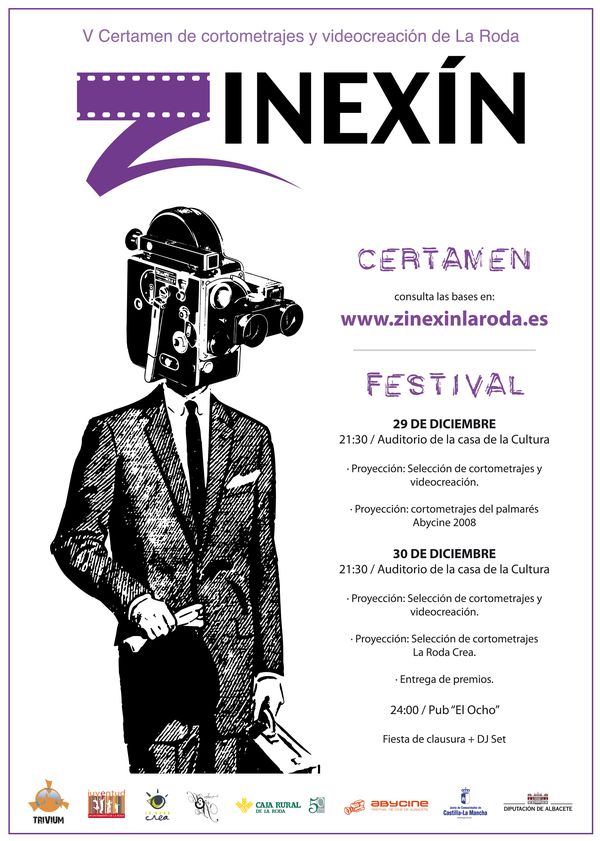 ZINEXÍN es un certamen de cortometrajes y videocreación que nace en el año 2004, de la mano de la asociación Trivium. El objetivo inicial, y que todavía hoy perdura, es el de acercar el mundo del cortometraje a La Roda y alrededores, intentando fomentar la participación de los ciudadanos de La Roda. Además, ZINEXÍN pretende fomentar la creatividad y apoyar las propuestas más innovadoras, ya sean en vídeo o en celuloide. Por último, el certamen da la oportunidad a los autores seleccionados de exhibir sus obras en pantalla grande (dentro de lo que se denomina el festival ZINEXÍN).