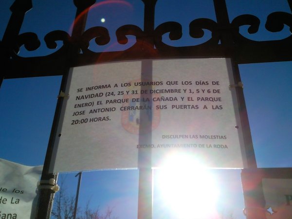 Por cierto, una vez más la realidad vuelve a poner en su lugar a quienes tratan de confundir acerca de este tema. En numerosas ocasiones habrán oído a Vicente Aroca, Constantino Berruga y Sixto González decir que no es necesario cambiar el nombre del parque, porque nadie lo conoce como parque de José Antonio. Es algo en desuso, dicen. Y añaden que llamarlo así son ganas de enredar. La imagen siguiente está tomada esta misma Navidad.