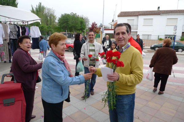 CRÓNICA DE LA RODA.- La candidatura por el cambio, encabezada por Antonio Delgado, ha visitado este sábado el mercadillo de La Roda, instalado en el paseo ferial. Allí, ha repartido más de mil folletos y unos setecientos claveles, entre los numerosos ciudadanos que se han interesado por el proyecto. “Ha sido una experiencia gratificante, porque el contacto con la gente nos ha dado un gran apoyo y estímulo, hemos sentido las ganas de la ciudadanía por conseguir el cambio que necesita la localidad”, ha dicho Delgado”. El candidato se ha mostrado sorprendido por la cercanía de los ciudadanos, que se han interesado de forma masiva por las propuestas del PSOE para La Roda.