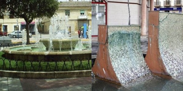 Hablamos de una obra que ha costado 150.000 euros y que antes de los dieciocho meses ya tenía grietas y desconchones. Las primeras reparaciones corrieron a cargo de la empresa encargada de construir la fuente, según comentó en su día el equipo de Gobierno. Las fuentes también tienen garantía, como las televisiones. Pero con seis años la fuente está para tirarla, luego aquellas reparaciones en garantía sirvieron de nada. “Me devuelvan el dinero, oiga”, reclamamos por mucho menos.
