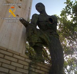 Un joven de 23 años, A.G.S., vecino de La Roda, fue detenido el pasado 4 de septiembre como presunto autor del destrozo del monumento del trasvase Tajo-Segura que se encuentra junto a la autovía A-31. El Equipo de Investigación de la Guardia Civil de La Roda localizó ventas de bronce en empresas de La Roda y Sisante, lo que permitió identificar al autor de la venta y su posterior detención.