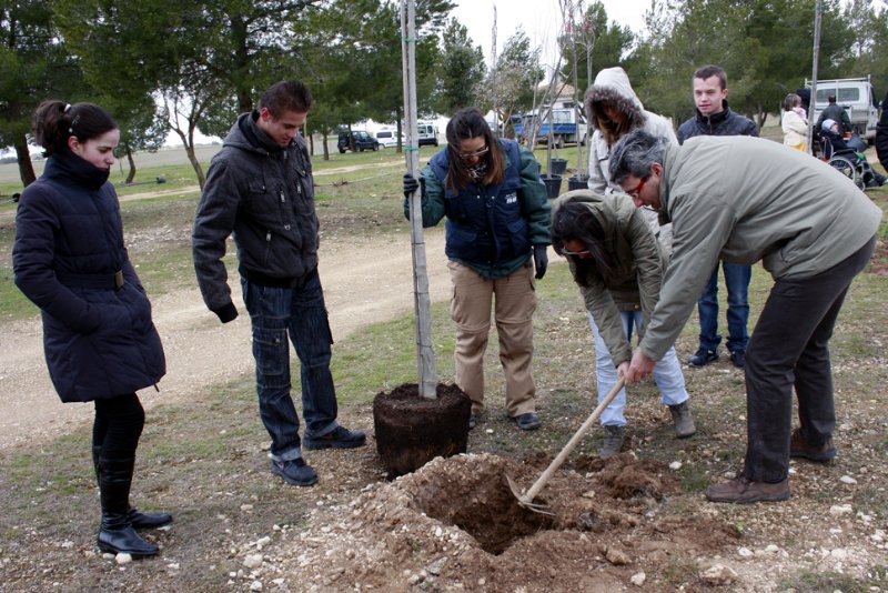 Un grupo de estudiantes de 4º de ESO del colegio María Auxiliadora y usuarios del centro de educación especial “Virgen de los Remedios” (ASPRONA) participaron el pasado lunes en una jornada de plantación de árboles en el paraje del Término, que separa La Roda de Fuensanta. A través de esta iniciativa, promovida por la concejalía de Medioambiente con el apoyo de la Fundación Caja Rural, se han plantado 5 higueras, 2 encinas, 15 almeces, 5 plátanos de sombra, 5 melias y 20 pinos, lo que hace un total de 52 ejemplares.