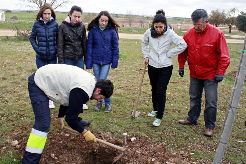 Los chavales estuvieron asesorados en los trabajos de plantación por miembros del grupo de jardinería de la Escuela Taller La Enzina y un técnico municipal de Mediambiente. También estuvieron presentes el concejal del área, Javier González, y el presidente de la Fundación Caja Rural de La Roda, Juan Antonio Fernández.