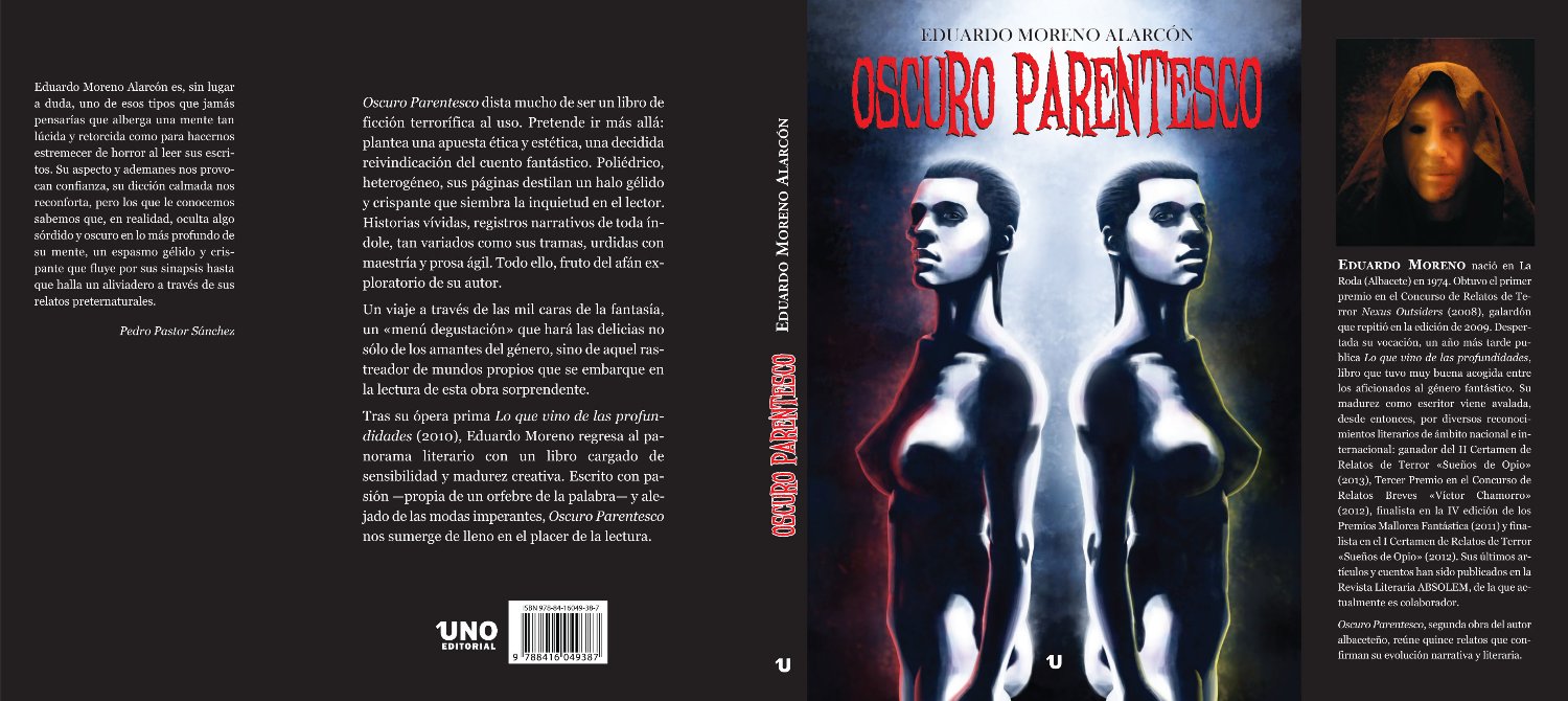 “Oscuro Parentesco dista mucho de ser un libro de ficción terrorífica al uso. Pretende ir más allá: plantea una apuesta ética y estética, una decidida reivindicación del cuento fantástico”. Es la carta de presentación de la nueva obra del rodense Eduardo Moreno, cuyas páginas “destilan un halo gélido y crispante que siembra la inquietud en el lector. Historias vívidas, registros narrativos de toda índole, tan variados como sus tramas, urdidas con maestría y prosa ágil. Todo ello, fruto del afán exploratorio de su autor”.
