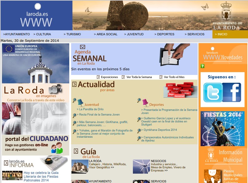 ¿Dónde puedo informarme de los próximos acontecimientos que tendrán lugar en mi amada tierra? La respuesta es sencilla: en la página web del ayuntamiento. Coloco el nombre de mi pueblo en google y como primera opción aparece «laroda.es». Un nombre corto y sencillo. El escudo que luce en la parte superior derecha me confirma que es la página oficial de mi recuperado pueblo. Pincho en el enlace. «Sin eventos en los próximos 5 días», me anuncia. Hoy es martes treinta de septiembre y no hay ningún acontecimiento en el pueblo. Algo normal en esta época del año.