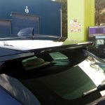 Portón trasero de plástico. Techo casi plano y destacable alerón. Mejora el coeficiente aerodinámico y quita peso.