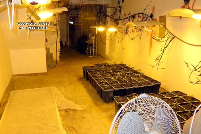 La Guardia Civil ha incautado 210 plantas de cannabis sativa, en fase de crecimiento, 250 gramos de la misma sustancia dispuesta para su venta, así como material eléctrico (transformadores, lámparas, ventiladores, etc.), y diversas sustancias fertilizantes para acelerar el crecimiento de las plantas.
