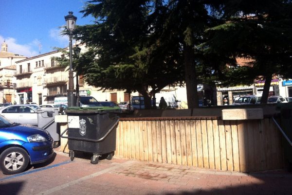 El Ayuntamiento se desdice otra vez y retira los contenedores de papel de la plaza Mayor