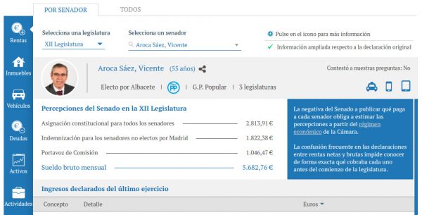 El diario El Mundo ha hecho un sondeo entre la mayoría de senadores sobre su declaración de bienes y rentas y el alcalde de La Roda es uno de los que se se ha negado a responder