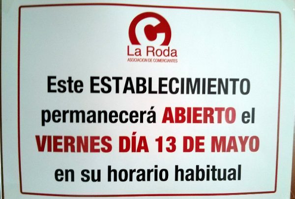 La Asociación de Comerciantes de La Roda ha anunciado que a pesar de que la fiesta de San Isidro se haya trasladado al viernes 13 de mayo, ellos abrirán sus establecimientos como un día normal