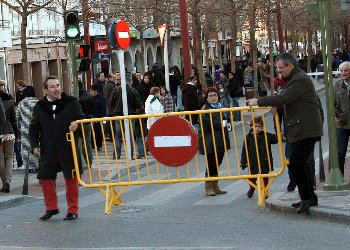 El alcalde posó poniendo una valla que cortaba el tráfico, ante la falta de agentes. La Guardia Civil asumió el dispositivo de seguridad, aunque el Ayuntamiento tuvo que tirar también de voluntarios de Protección Civil y Cruz Roja