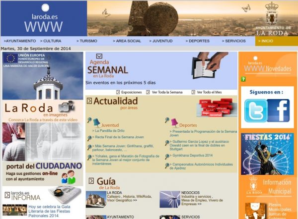 Después de unos años fuera de La Roda y desconectado de la actualidad local, qué mejor sitio para informarme de los próximos eventos que tendrán lugar en mi pueblo que en la página web del ayuntamiento